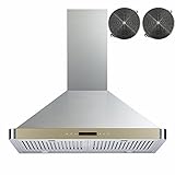 Golden Vantage 30" Wall Mount Range Hood Stainless Steel Golden Ductless Hood W/ Touch Control Panel Carbon Filters Included: Appliances